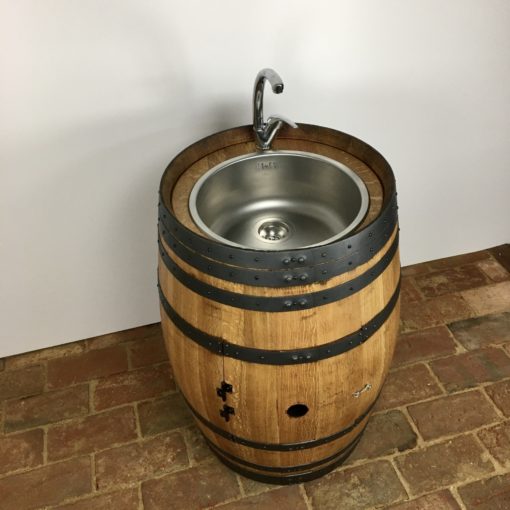 Oryginalny zlew wykonany z beczki dębowej używanej do produkcji wina.